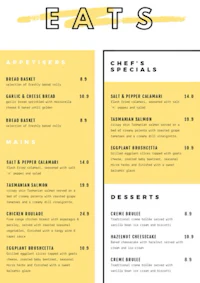 *please note that this isn’t all of the food available, we are working on a new version of the menu that includes all of the new courses.